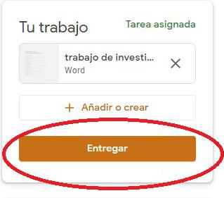 Confirma la entrega de tu trabajo seleccionando “Entregar”