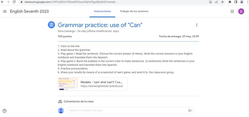 Si tienes dudas sobre tu tarea, puedes enviar un comentario privado a tu profesor. También puedes compartir un comentario público con tu clase con respecto a la tarea.