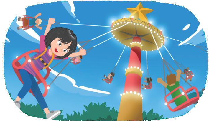 B Look at A . Practice the dialog with the new words. water ride / awesome 1 drop tower / thrilling 2 swing ride / amazing 3