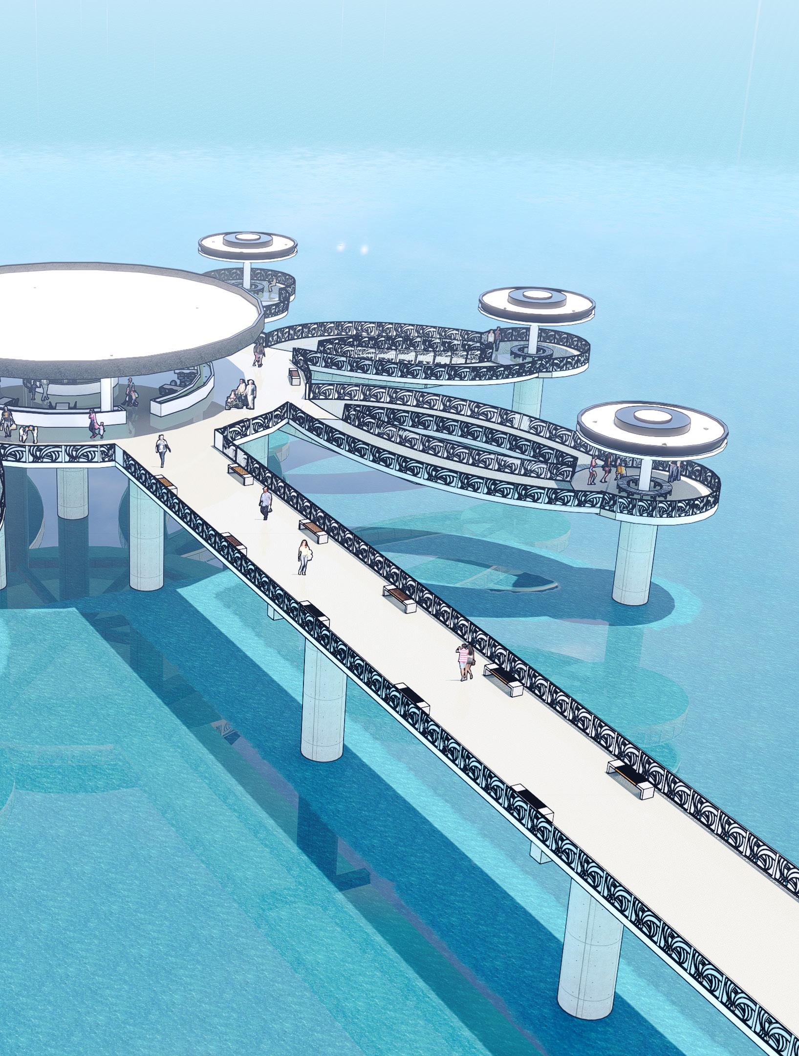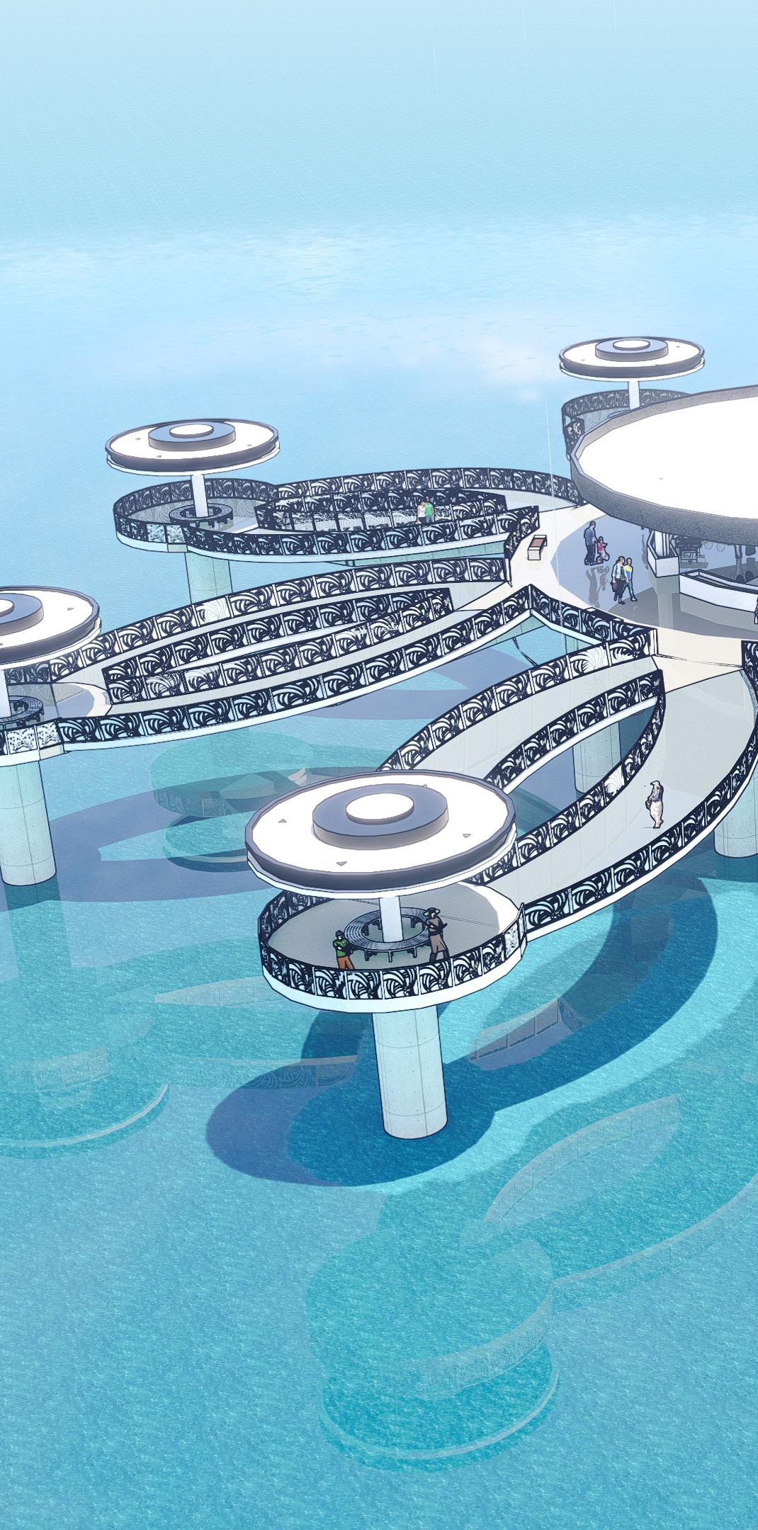 La planta intermedia alberga más locales comerciales, junto con zonas comunes que incluyen pasillos y áreas de descanso, diseñadas para ofrecer a los visitantes un ambiente relajante mientras esperan. En la planta superior, se ofrece una zona de observación que cuenta con vistas panorámicas impresionantes, ideal para aquellos que desean disfrutar del paisaje y la belleza de la zona. Además, se contempla la posibilidad de incorporar atracciones turísticas o espacios recreativos para hacer la experiencia aún más completa.