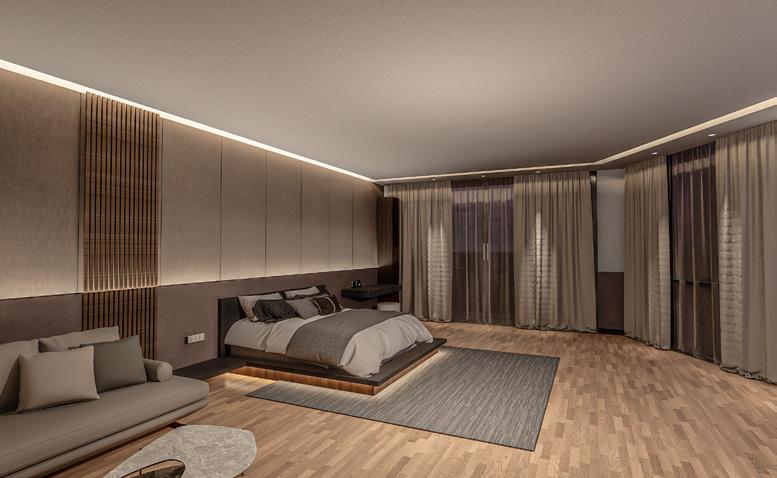 La estructura del edificio es elegante y avanzada, con una disposición meticulosamente planificada que resalta su carácter contemporáneo. En el centro, un gran ventanal en el techo permite que la luz natural inunde generosamente el interior, creando un ambiente luminoso y aireado que conecta el espacio interior con el exterior.