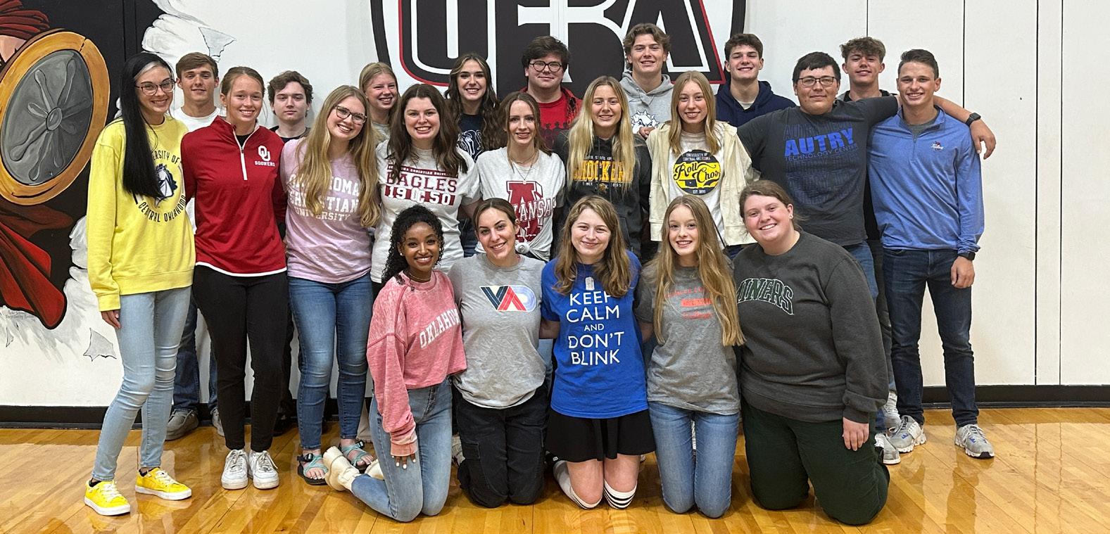 Now we want to take a moment to recognize this senior class's achievements. We will have five Valedictorians, two Salutatorians, eight students graduating with honors and a National Merit Scholar. That’s over half the class. One student passed all nine of their AP exams. We have three students attending college as athletes after successfully leading their teams this year. This year’s seniors have one of the highest collective ACT scores in OBA history and already acquired hundreds of hours of college credits. We had three students win the Oklahoma Arts Excellence Award and one write and direct their own play. They’ve excelled as members of Gaslight teens, church youth group leaders, travel sports team members, and one already sworn into the Air National Guard.