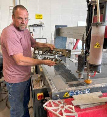 The basic idea is this: if you have an idea for making something, the folks at McCullough “can bring it to life with the help of our software, equipment, and machines!” As long as what you want to create is an item that is tangible, they can help you do it. You provide the materials, and they will guide you through the process and teach you how to use the equipment (note: some items, such as filament for the 3D printers, are available at cost). The lab has several main spaces. The larger area is the “metal zone,” which houses equipment for tackling projects in media such as wood and metal. This zone sees the most usage, and Shelby said that “the water jet is by far the most frequently used piece of equipment in the lab.” In laymen’s terms, the water jet “uses high pressure water and “garnet sand” to cut precise and repeatable shapes out of many different materials, including steel, aluminum, plastic, and wood,” explained Allan Feek, a local hobby enthusiast. Also avail-