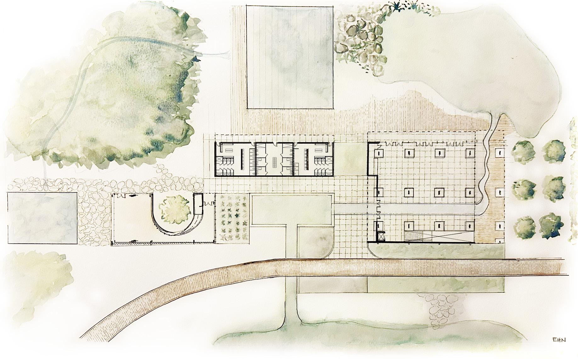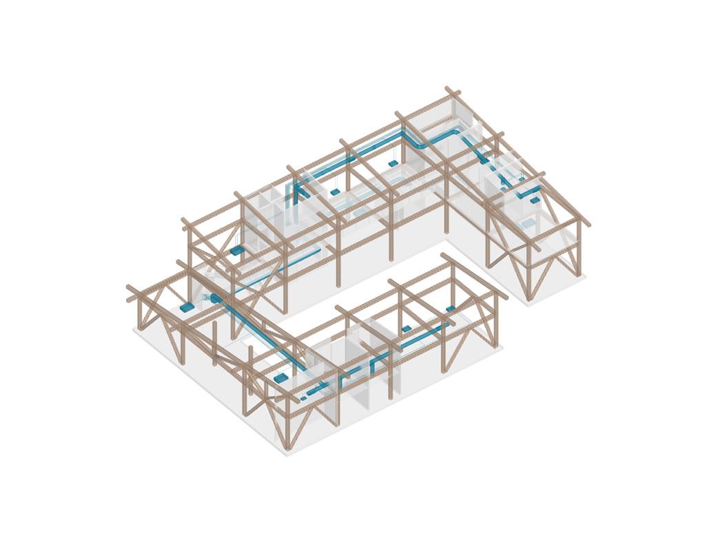 This integrated design project envisions a second headquarters for the National Building Institute, merging sustainability, functionality, and public engagement within a holistically conceived architectural framework. Utilizing hempcrete mass walls for thermal performance and environmental integrity, the design weaves bioclimatic strategies, structural innovation, and mechanical efficiency into a cohesive whole.