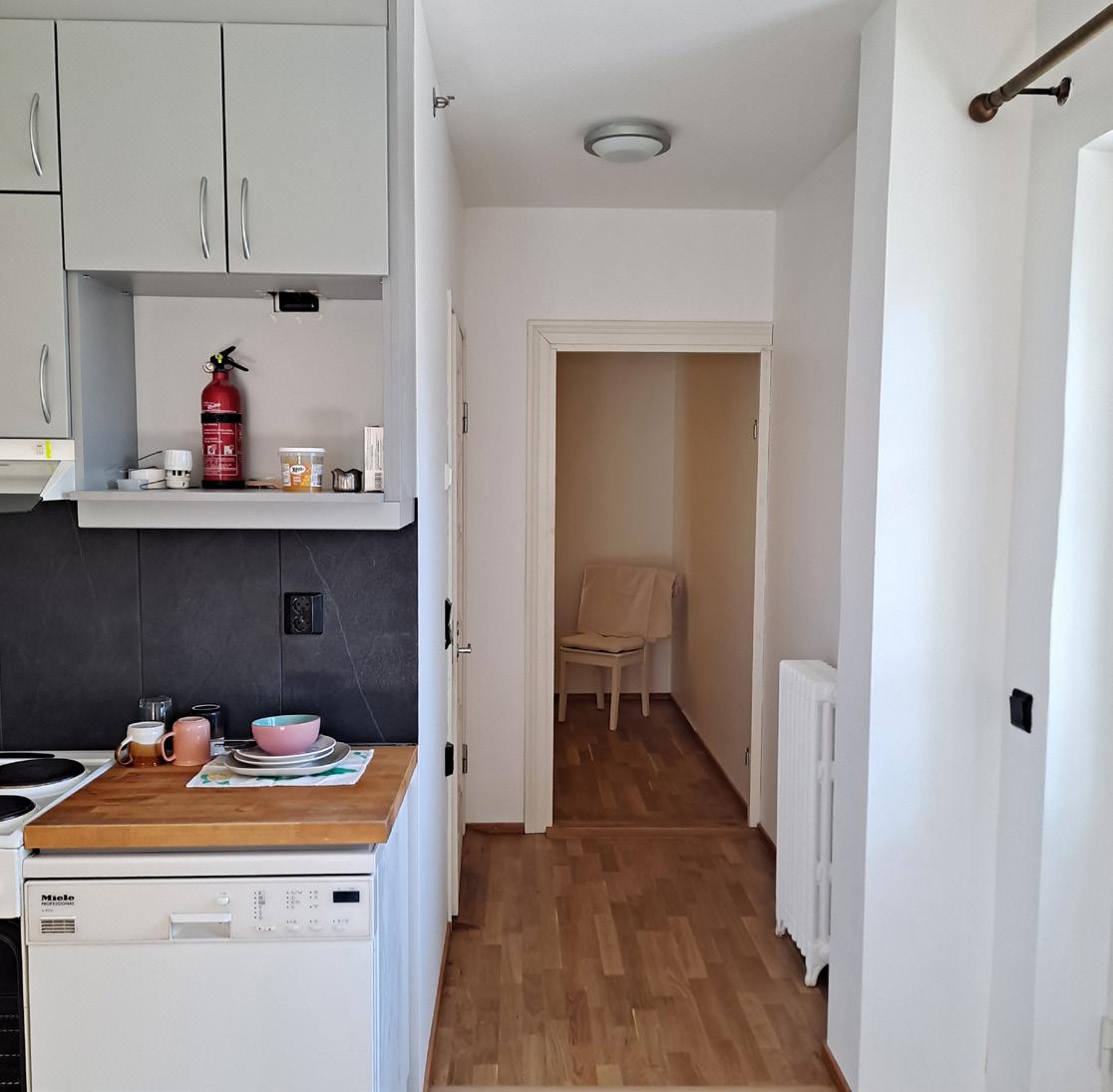 Eine Zweizimmerwohnung mit eigenem Küchenraum in ruhiger, zentraler Lage (Munkivuori, Ulvilantie). Befindet sich im Erdgeschoss. Miete 850 Euro. Frei ab sofort.