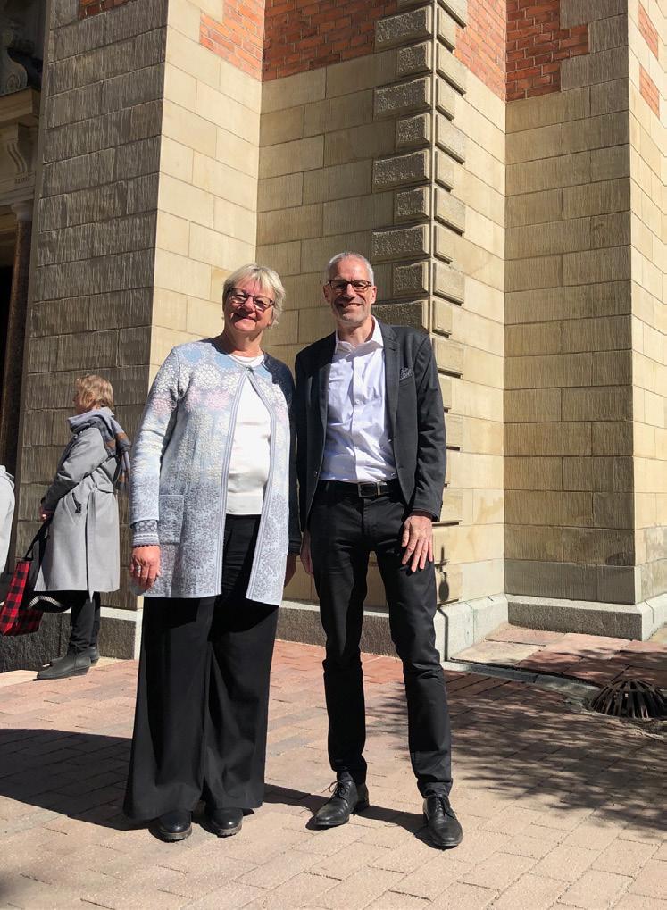 Zum Anlass des Jubiläums haben sich Pfarrer Lutz Tietje und Gemeindekirchenrätin Astrid Siegmund–Breivik auf den Weg nach Stockholm gemacht. Es war uns wichtig, Interesse und Teilnahme für dieses große Ereignis im Nachbarland zu zeigen und wir wurden mit offenen Armen und Herzen von Pfarrer Jörg Weissbach, vom Vorsitzenden des Kirchenvorstandes Daniel Höffker und vielen anderen Mitgliedern der Gemeinde aufgenommen. Es waren ebenfalls Repräsentanten der Deutschen Gemeinden in Göteborg, Malmö, Helsinki,