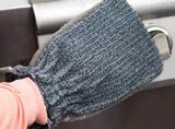 Rinse the glove and leave it wet. Remember that the dirtier the surface, the wetter the glove should be.