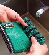 For removing heavy soilage on crockery, pots, pans, ovens etc. as well as burnt on dirt where scouring is needed. Use the mottled black/grey side to loosen stubborn dirt.