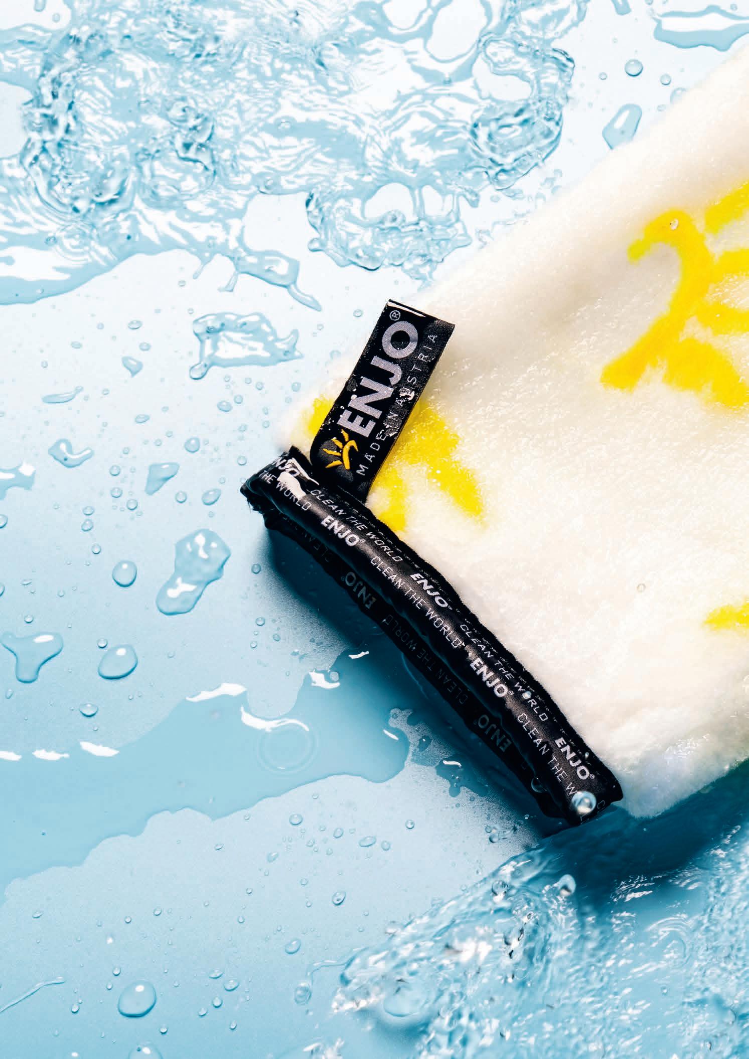 Vi använder ENJOtex-fibrer och kallt vatten för rengöring.