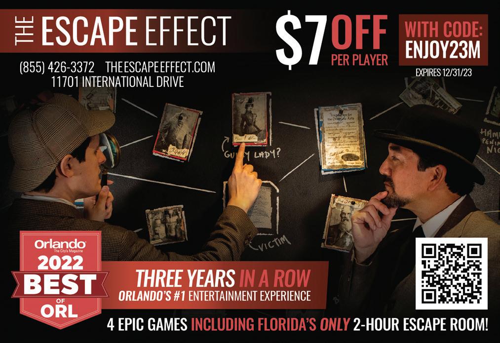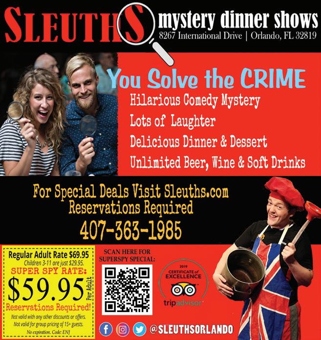 ENJOY FLORIDA MAGAZINE DECEMBER 2022 - APRIL 2023 21 escapology.com 11951 International Drive, Orlando $5 OFF Not valid with any other o ers or discounts. Expires 8/31/23. Code: EnjoyFL5 T: (407) 278-1515 E: orlando@escapology.com THE LIVE ES C A P E G AM E STAR TREK: COMING SOON TM & © 2021 CBS Studios Inc. All Rights Reserved. SCOOBY DOO SCOOBY-DOO and all related characters and elements © & TM Hanna-Barbera SCOOBY DOO MURDER ON THE ORIENT EXPRESS CAN YOU ESCAPE?