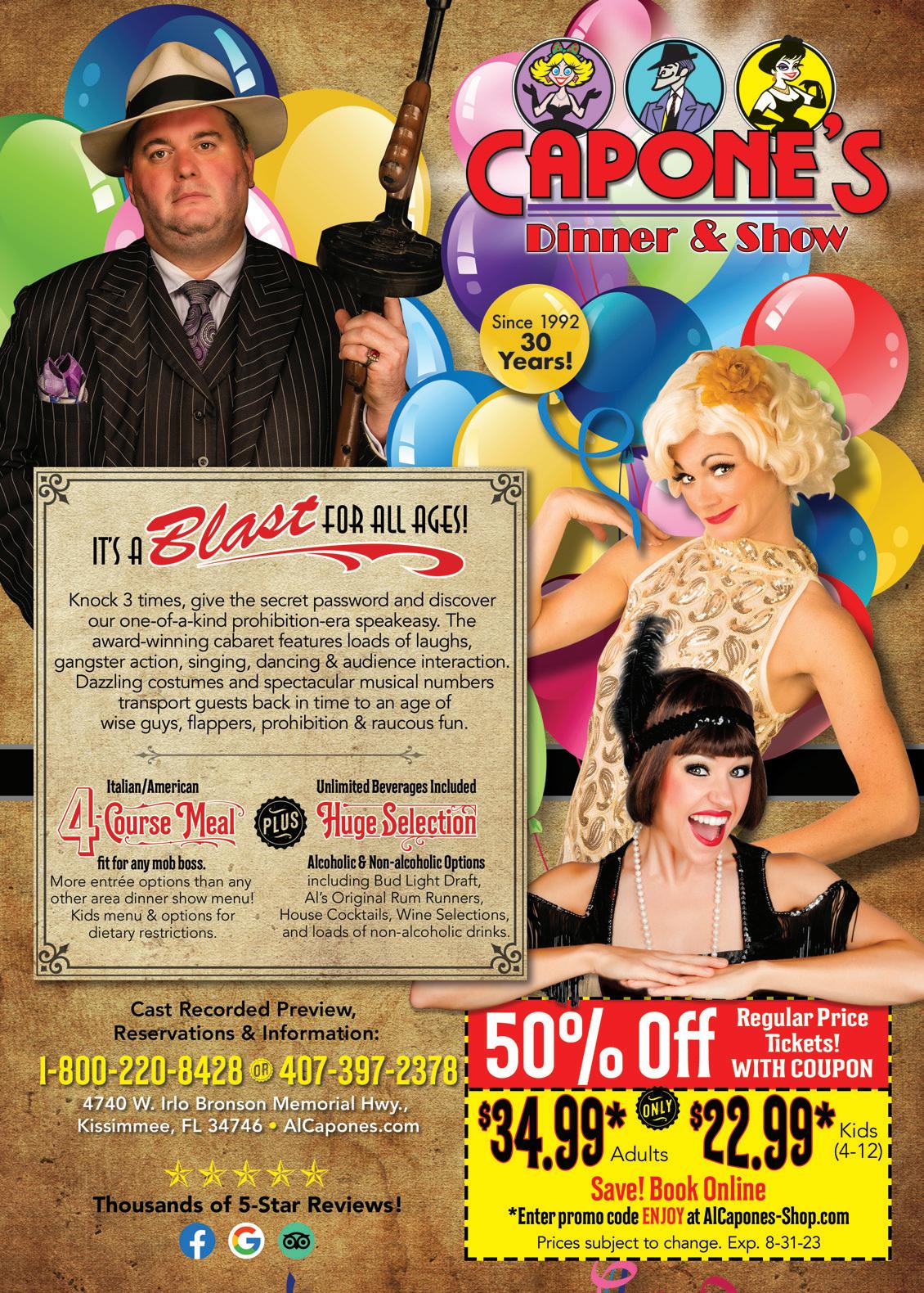 ENJOY FLORIDA MAGAZINE - ORLANDO DECEMBER 2022 - APRIL 2023 45 LIVE LIKE A LOCAL, EXPLORE LIKE A TOURIST .COM SCAN HERE OR FOLLOW US AT @ENJOYFL @ENJOYFL /ENJOYFL GET THE MOST OUT OF YOUR VACATION VISIT ENJOYFLORIDA.COM ADDITIONAL 10%OFF With the purchase of a drink with each bu et. Not valid with any other o er. Limit one coupon for up to six people. Expires 8/31/23. ENJ ALL YOU CAN EAT FOR JUST VOCE PODE COMER TUDO APENAS POR USTED PUEDE COMER TODO SOLO POR USTED PUEDE COMER TODO SOLO POR ITALIAN BUFFET OPEN 12PM - 12AM LUNCH $11.99 Dinner $13.99 Kids $8.99 & $9.99 Serious