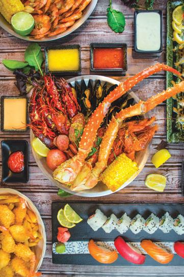 JUICY SEAFOOD & BAR 5771 W. Irlo Bronson Memorial Hwy, Kissimmee, FL 34746 On Hwy 192 across from Old Town | Open Sun-Thu 12pm-10pm, Fri-Sat 12pm-11pm 407-479-0099 | MMCSEAFOOD.COM WEST IRLO BRONSON / HWY 192 OLD TOWN HOLIDAY TRAIL SERALAGOBLVD STATE ROAD 535 15% OFF YOUR ORDER Kissimmee location only. Not valid with any other offers or discounts. Expires 8/31/23. Code: EF Mr. & Mrs. Crab offers a diverse range of juicy seafood including shrimp, oysters, blue crab, snow crab, crawfish, clams, mussels, Dungeness crab, and lobster! All cooked with our unique blend of spices! Our hands-on dining style integrates American country cooking with traditional Chinese Szechuan spicy flavor to create a unique taste experience. All Universal, Disney, SeaWorld, and Legoland park employees receive 15% off with proof of employee ID (Kissimmee location only).