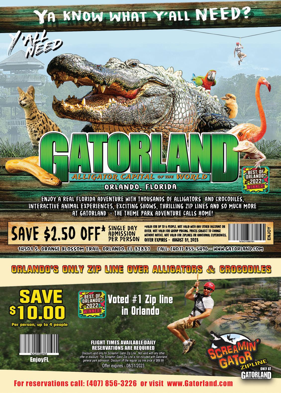 There are endless ways to ENJOY your time here and continue to create memories that will last a lifetime. Soak up some sun in a waterpark’s lazy river or while playing mini golf. Dine on delicious cuisine while being entertained by a variety of dinner show experiences. In teract with animals of all kinds at outstanding zoos, aquari ums, and parks. Test your nerve on a high-flying zip line, experience the hairpin curves of a go kart track, or scream your loudest on a thrilling roller coaster ride at one of our theme parks. Find that special souvenir or unique gift from one of our shops or outlets. Immerse yourself in the beauty of real Florida on an airboat or helicopter tour.