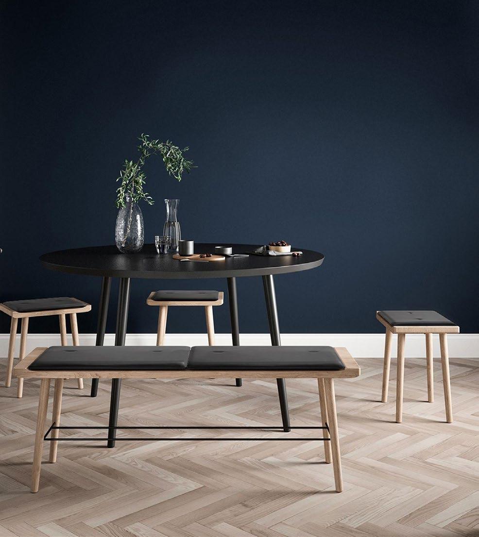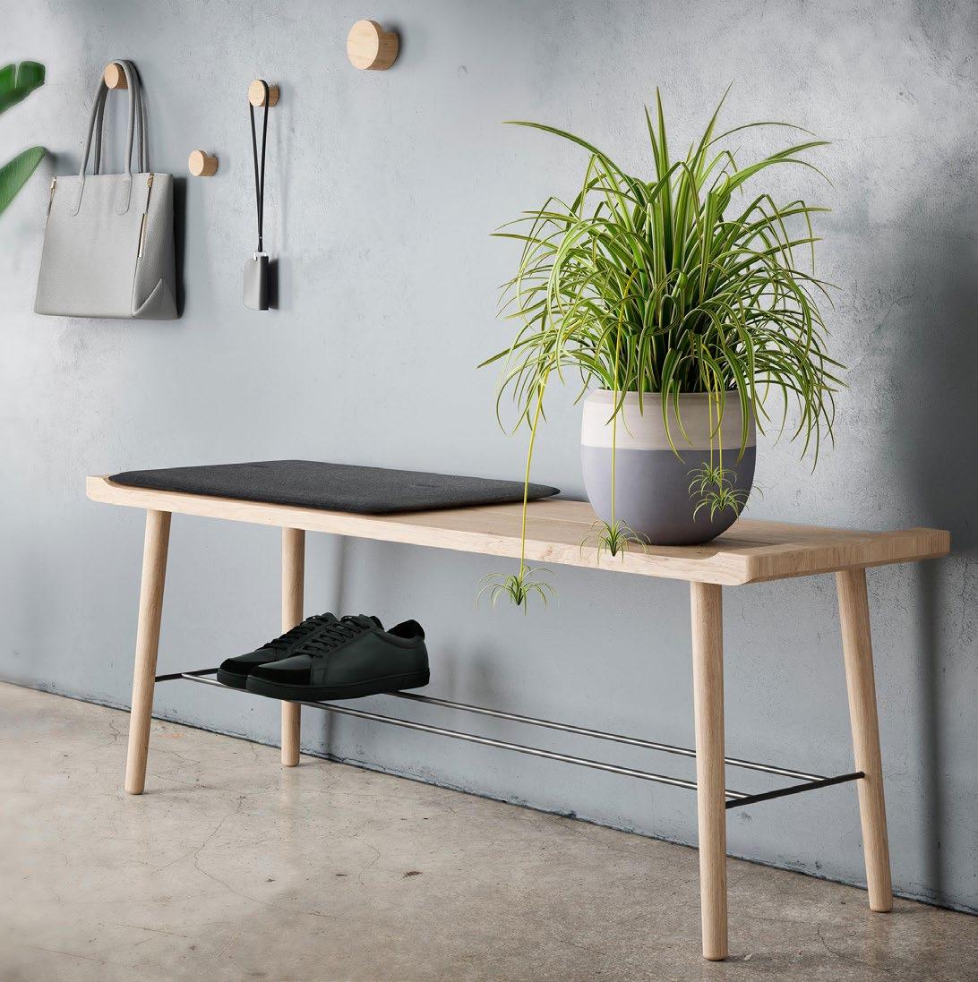 The Scala bench comes in soap treated oak, oiled oak, smoked oak, and black painted oak. You can add one or two seat cushions in either high quality leather from Sorensen Leather in Cognac or Anthracite colours.