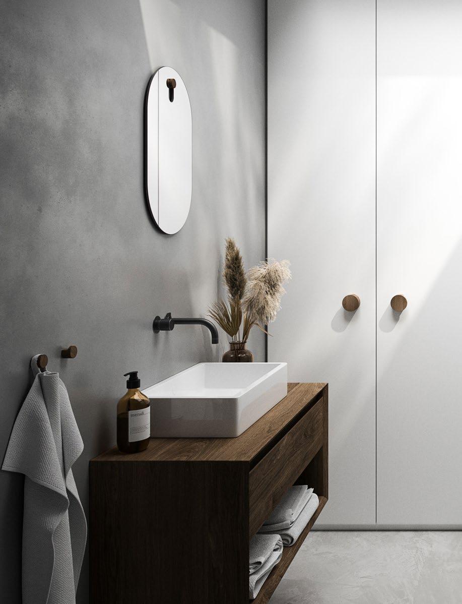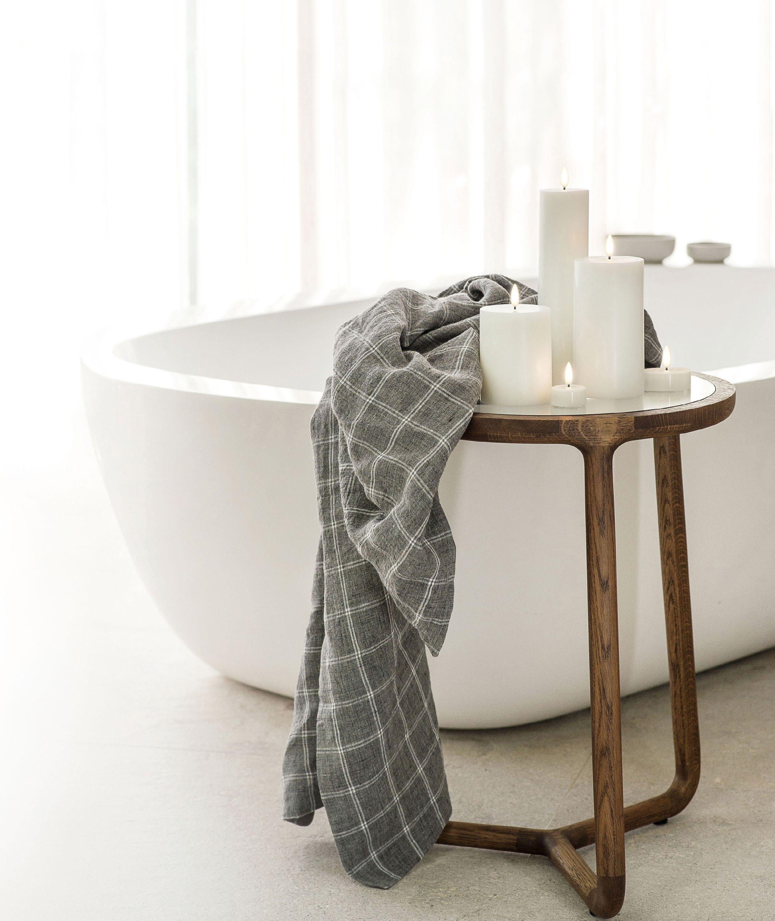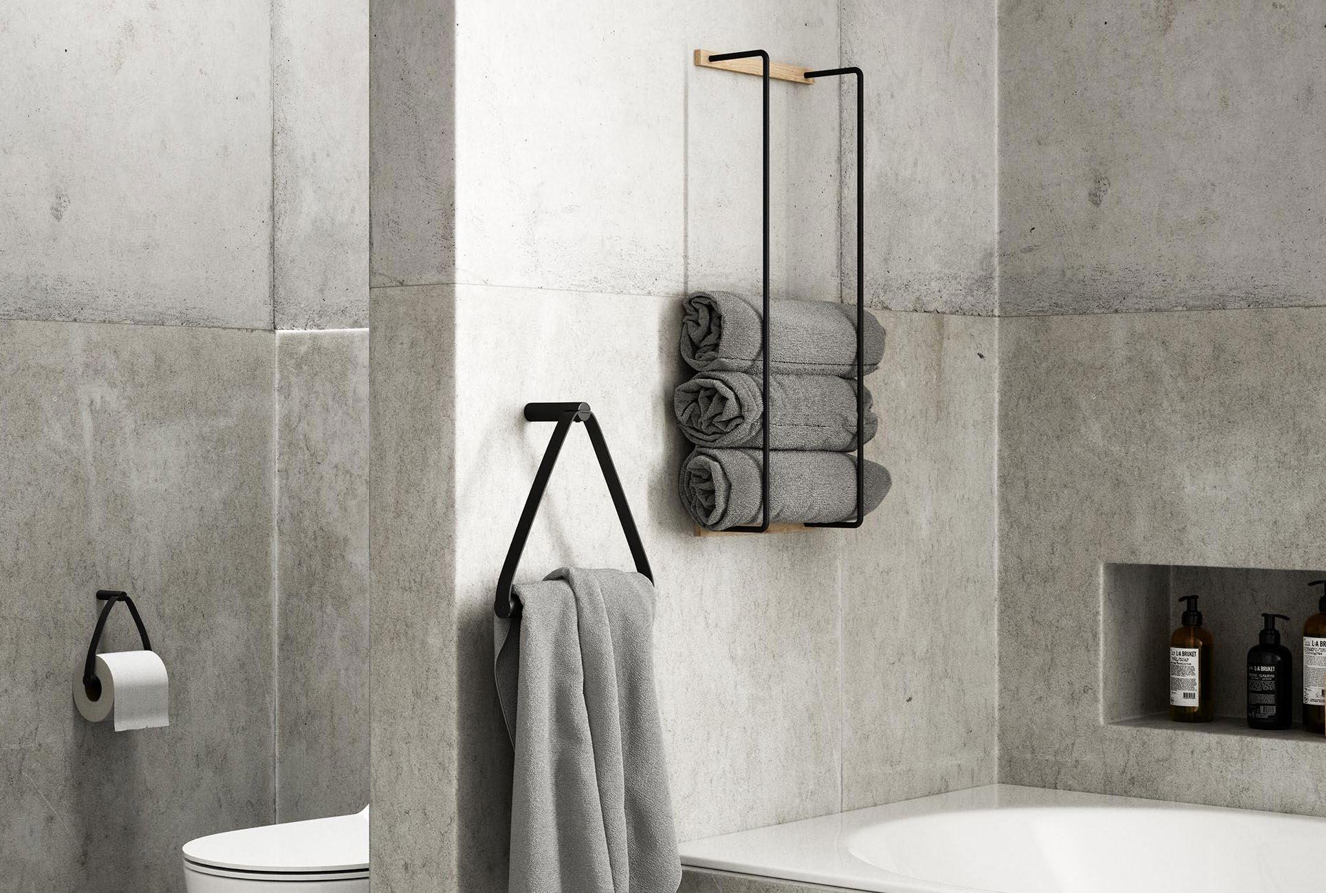 Why not let the clean Nordic feel accompany you all the way to your bathroom? Our bathroom collection comes in the natural, exclusive materials, European oak and tanned leather, and can provide warmth and give your bathroom a hint of the spa look.