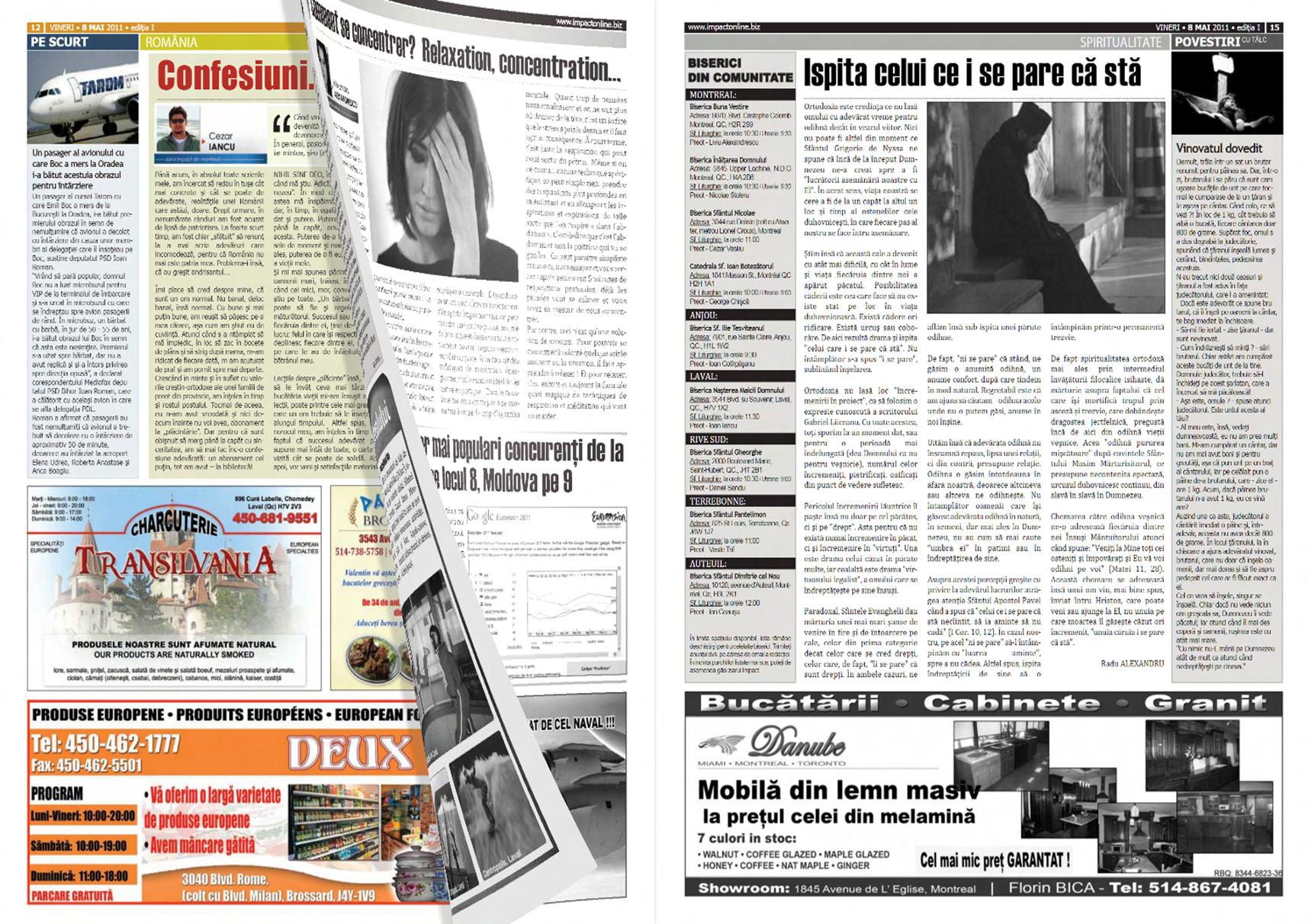 Impact Newspaper, a 24 pages bi-monthly publication, designed to meet the need for informational content of the Romanian community living in the Grand Region of Montreal.