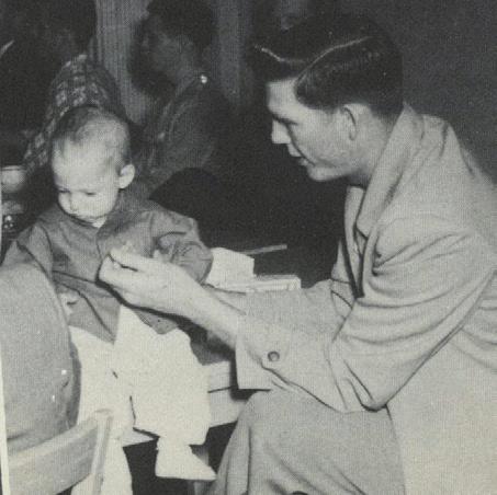 From the 1952 SilverPack Charles Fleming and his infant son at a Student Council Meeting