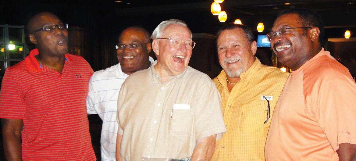 Above L-R: Terry Dillard (BS 80), Al Dillard (BS 78), Jack Scott, Jerry Wright (MS 78, BS 76), and Mike Dillard (MEd 78, BS 76) sharing a laugh during the reunion in 2011