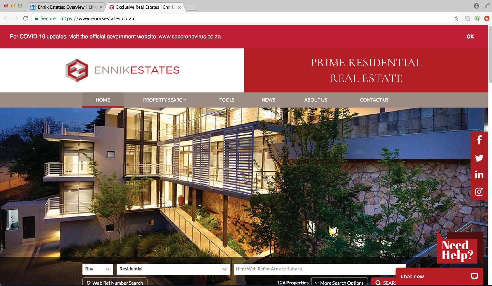 In light of the urgent health concerns around the COVID-19 pandemic, Ennik Estates is implementing the following socially responsible steps to ensure the good health and safety of our Ennik Estates community, clients and agents. Let’s work together to limit the impact of COVID-19. (These guidelines follow government recommendations to minimise contagion, proper hygiene at viewings and adequate social distancing). We undertake to follow all the regulations as laid out in the REBOSA guidelines.