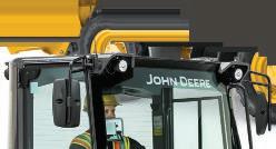 l Cab (conforms to SAE J1040, SAE J231, ISO 3471, and ISO 3449): ROPS/FOPS / Heater/defroster / Rubber-plane isolation mounted for noise/vibration reduction / Intermittent front and rear windshield wipers and washers / Tinted safety glass / Adjustable sun visor / Mid-back cloth seat with mechanical suspension / 51-mm (2 in.) retractable seat belt / Full swingout left and right doors with sliding window in left door