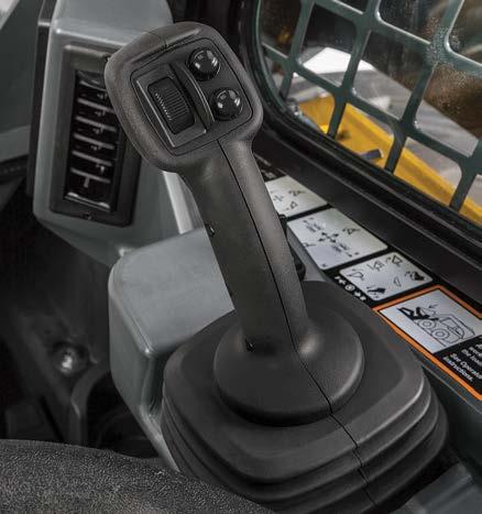 Big ideas that deliver Large cab entryway with swing-out door, generous foot- and legroom, sealing and pressurization to minimize dust and noise, and adjustable highback sculpted seat optimize operator comfort. Overhead panel conveniently puts machine data on the left and control switches on the right. Easyto-read LCD monitor reveals a wealth of vital operating info and advanced diagnostics.