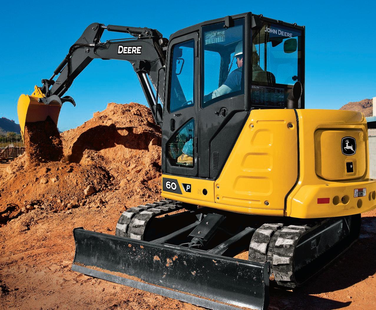 When you need more from your compact excavator, the John Deere 60 P-Tier might be your “one and done.” This small-but-mighty muscle specializes in making work in close quarters seem like no big deal. Loaded with customer-inspired ideas like significant lift and reach, precise control, and an amazingly comfortable cab, digging, excavating, and loading tasks become big possibilities. Plus it runs quiet, too. Jobsite-proven standard and optional advantages including your choice of tracks and John Deere attachments push the 60 P-Tier to make a sizable impact on the potential — and profitability — of your operation.