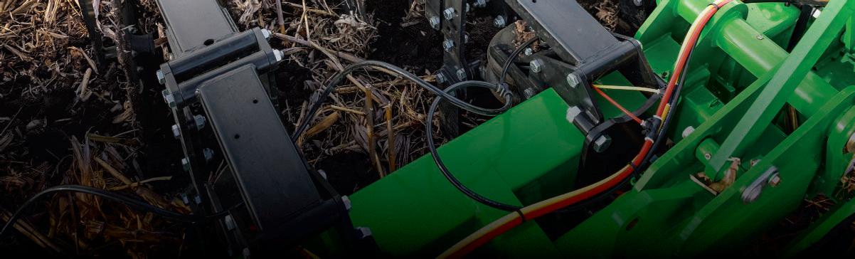 farm. Then, connect directly to John Deere Section Control, your GreenStar Rate Controller, and the GreenStar Display, for an advanced level of system control and application precision. Hydraulic wing down pressure and a flex-wing design help ensure accurate placement, while the hydraulic “wing-kick” feature lifts the wings during turns, minimizing crop damage.