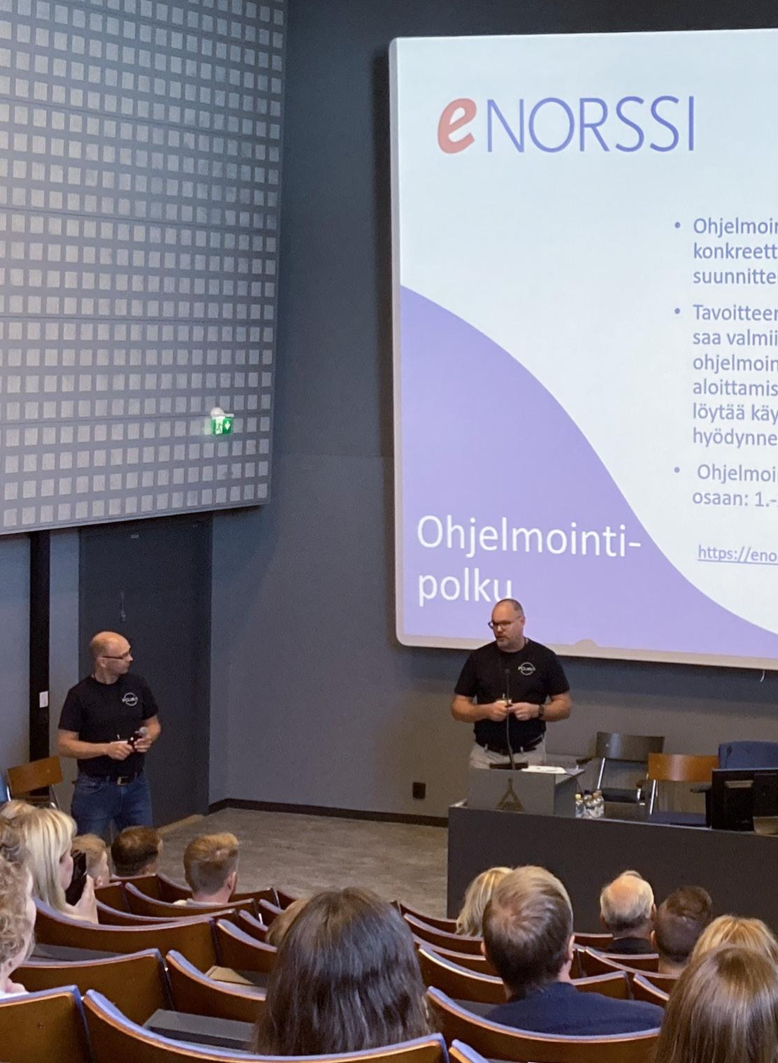 eNorssi-verkoston lehti 4/2022 Kuva: Sanna Isopahkala Tutkiva opettaja -tapahtuma Tampereella kasvatustieteen päiville Ouluun Nostalgiamatka Norsseissa koodataan! Norssien uusi tohtori: Merja Kuisma inkluusion puolesta Rummutusta