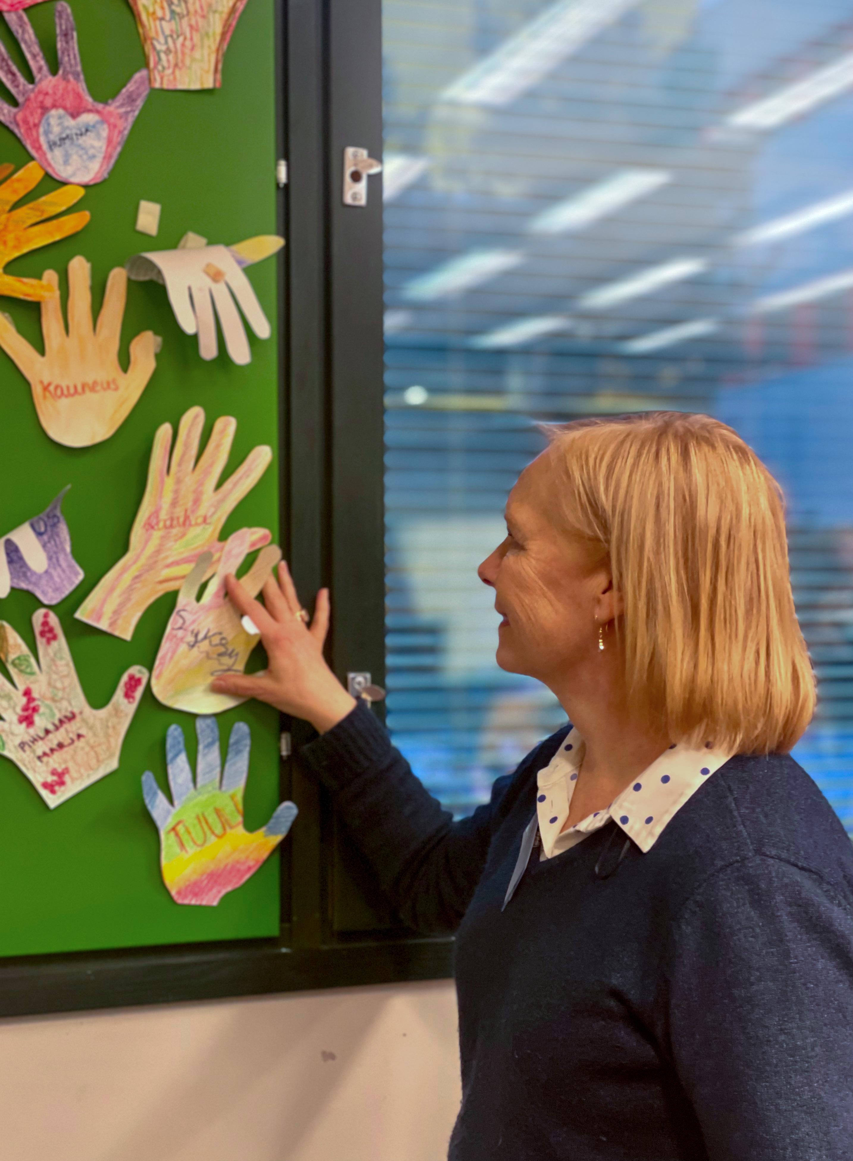 Ensinnäkin, kaikki toivotettiin ter vetulleeksi heti koulun ovella. Sama myönteinen viesti saattoi jatkua myös tullessasi luokkahuo neen ovelle. Tämä lämminhenkisyys, kannustus hyväntuuliseen kohtaamiseen, kosketti ja se näkyi sekä oppilaiden että oppilaiden ja opettajien keskinäisessä vuorovaikutuksessa. Myös huumori oli läsnä.
