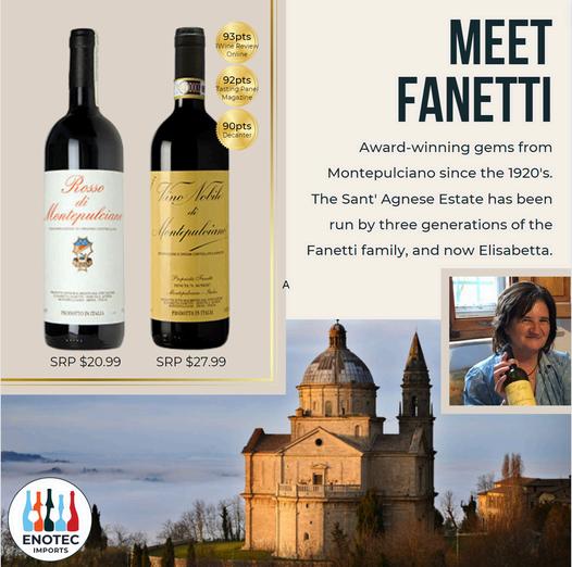 Made from 80% Prugnolo gentile-Sangiovese and 20% Canaiolo the Fanetti Vino Nobile di Montepulciano has great body and is smooth upon sip through finish.