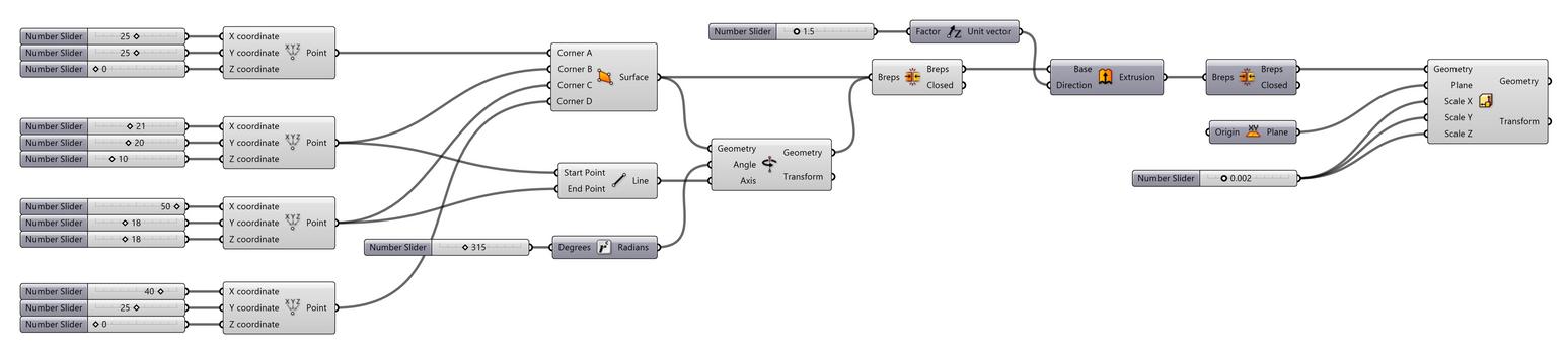 Com intuito de gerar a maquete fisicamente, por meio de corte a laser ou impressão 3D, foram feitos pequenos ajustes no arquivo do Grasshopper para que fosse possível a sua execução