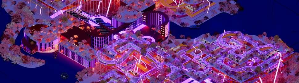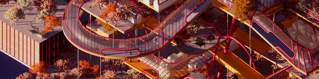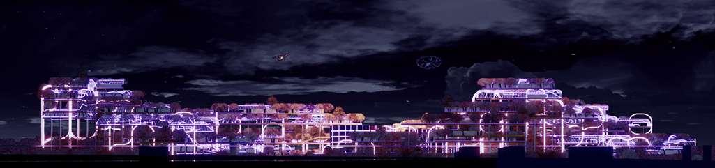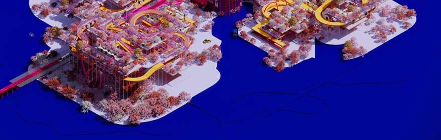 edesignprocessbeganwithmidjourneyAIto exploretransitionalhousingconceptsandChatGPT togenerateanitemisedlistofprogrammatic elements,combiningtermslike‘megacity’, ‘transitionalframework’,‘modularity’and‘living pods’.