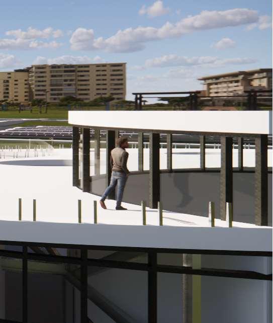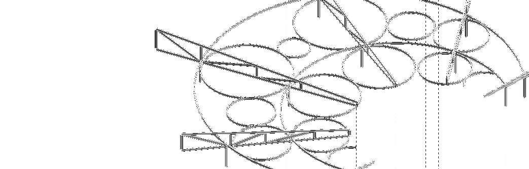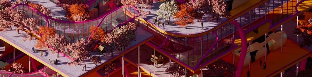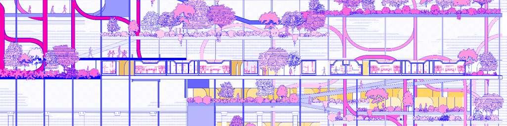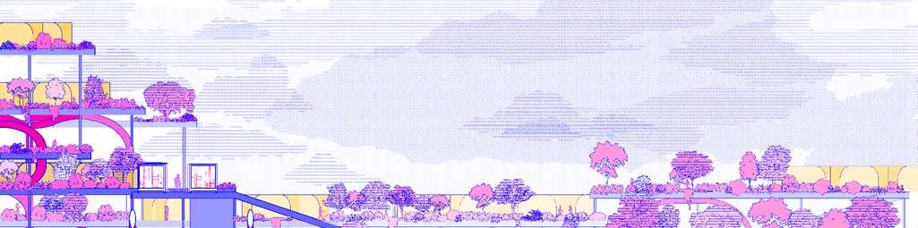 Anchoredbya24-footgridsystem,thedesign integratedgreenerywith layeredpathways,bridges andramps,creatingacohesiveurbanenvironment, withthemulticellularstructuralblueprintallowing each livingpodtofunctionwhileremaining autonomouslyinterconnectedwithinthebroader urbanfabric.
