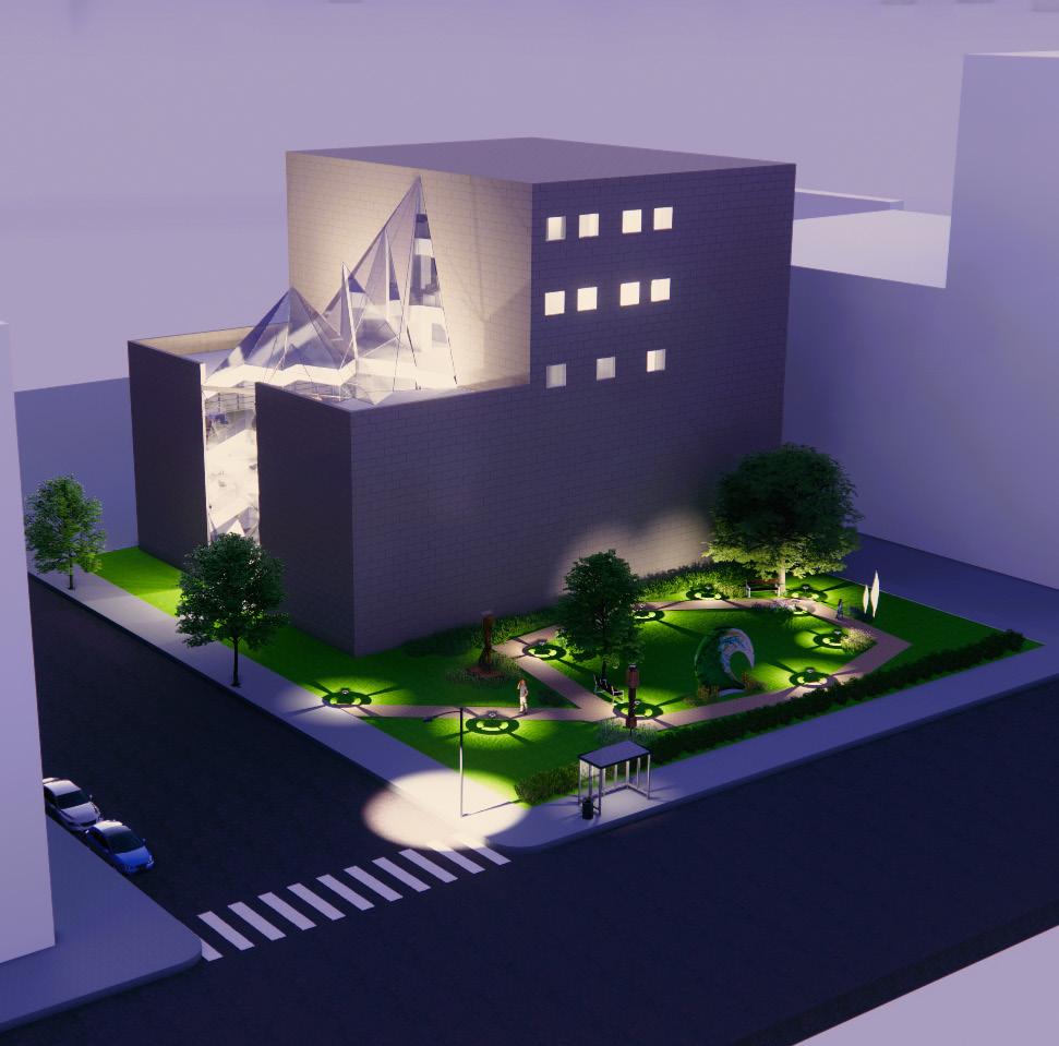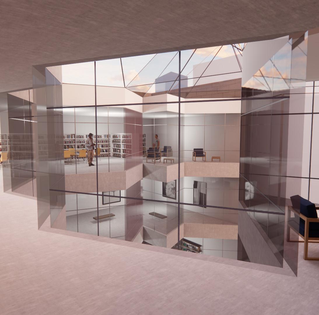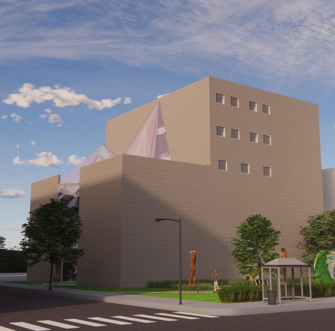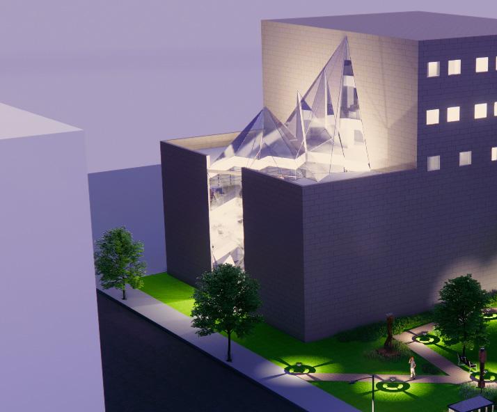 A much-needed community center and gallery space located in downtown Wichita, KS. The spaces allow quiet areas to study and learn. The building offers and outdoor green-space open at all times to visitors and passers-by. In the area, spaces to gather and be outdoors are much needed. The building is inspired by a geode, showing that Wichita has much to offer once you crack open the city.