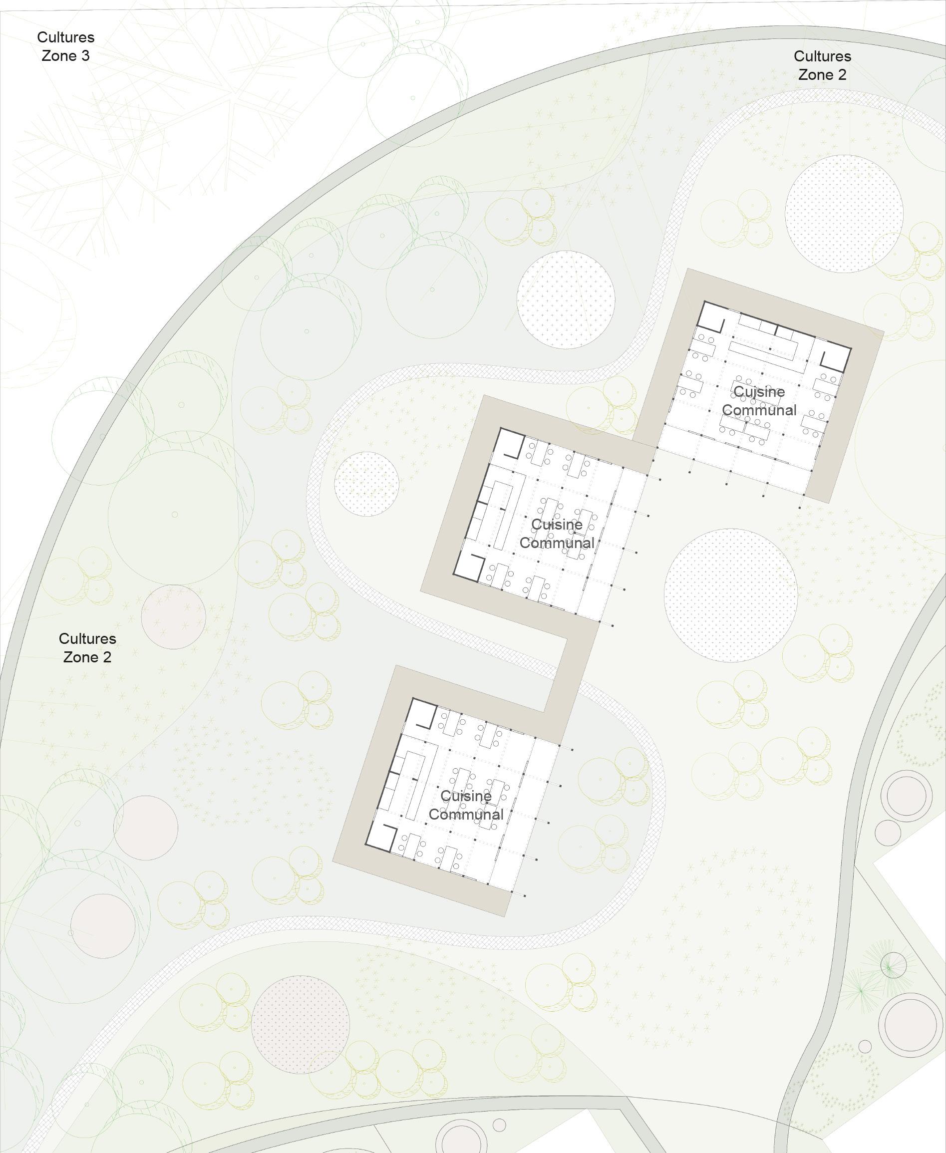 Dans ce contexte, il est proposé dans cette limite de créer une architecture qui permette la participation de la communauté avec le contexte naturel : une cuisine communautaire permettra le lien avec les produits agri-