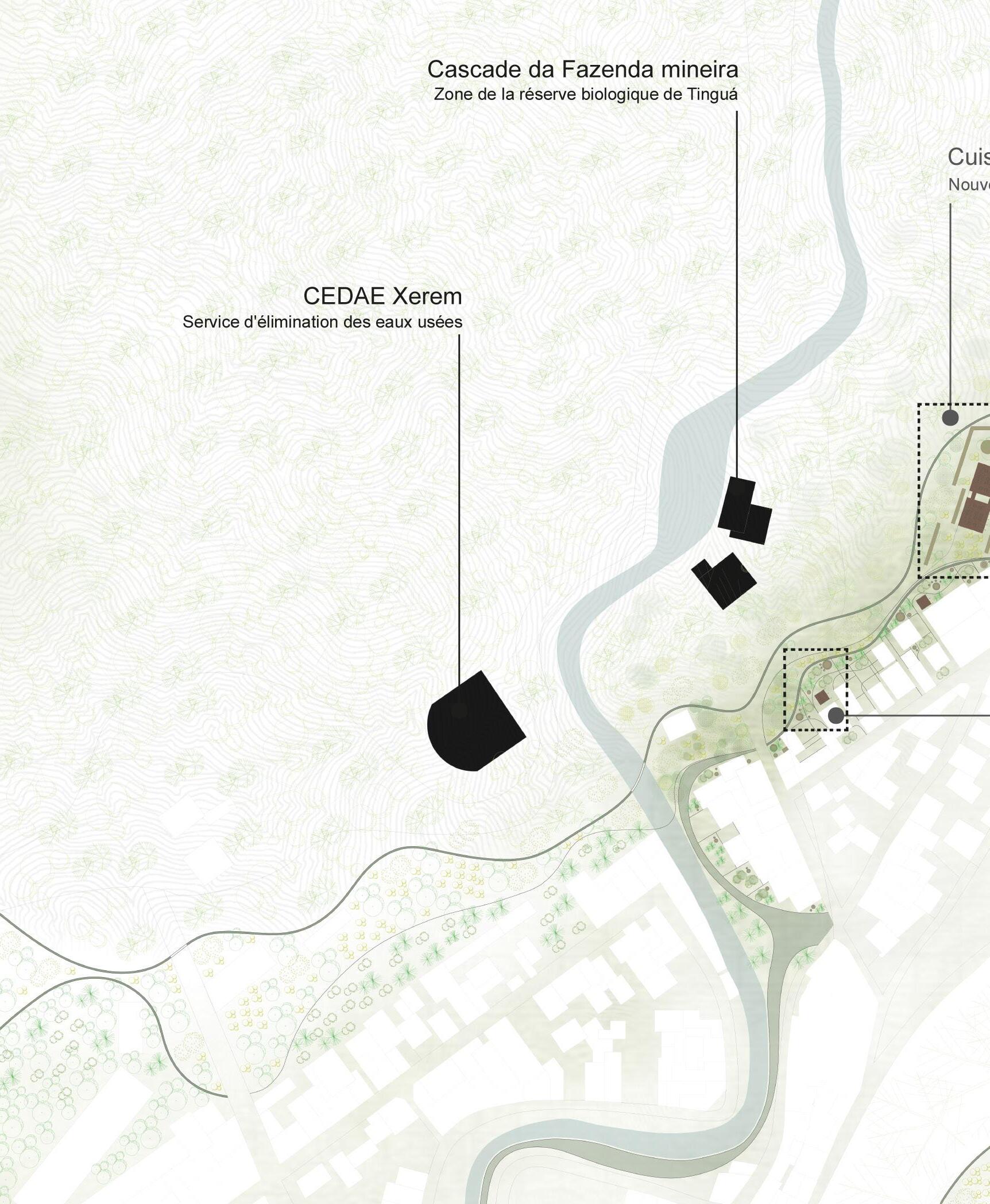 Entre la rivière et la ville : Ce projet questionne le futur de la rivière Saracuruna et ses alentours à Rio de Janeiro. Le district de Duque de Caxias et plus précisément Xerèm souffre d’inondations lors de période de fortes pluies. L’urbanisation massive est aussi en train de s’étendre, et des zones industrielles avec des ensembles de logements privés fermés s’élèvent dans la région.