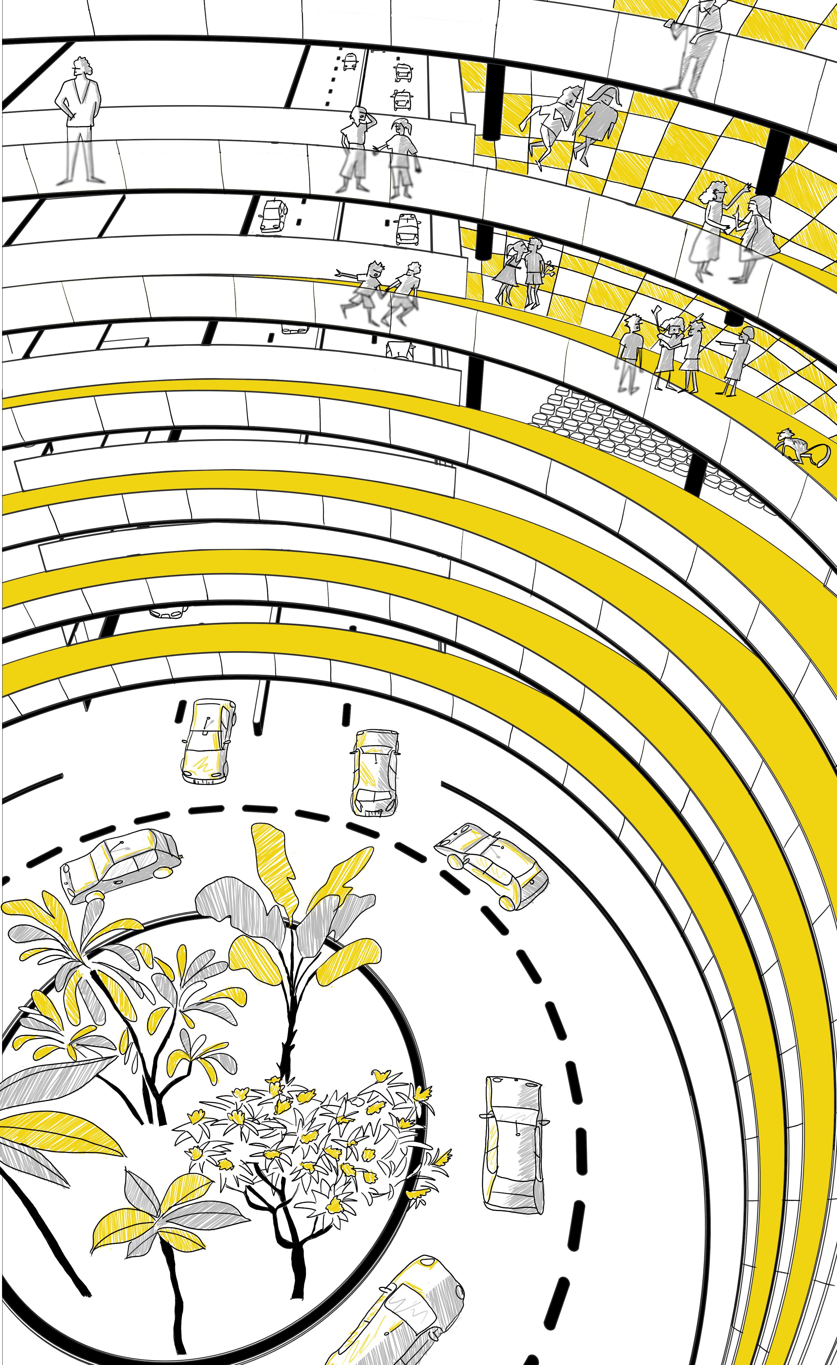 En intégrant des marchés dans les espaces vacants, le pro-jet encourage la convivialité et la communication entre les habitants. mais constitueront également un espace dynamique où se côtoient différentes communautés et cultures.