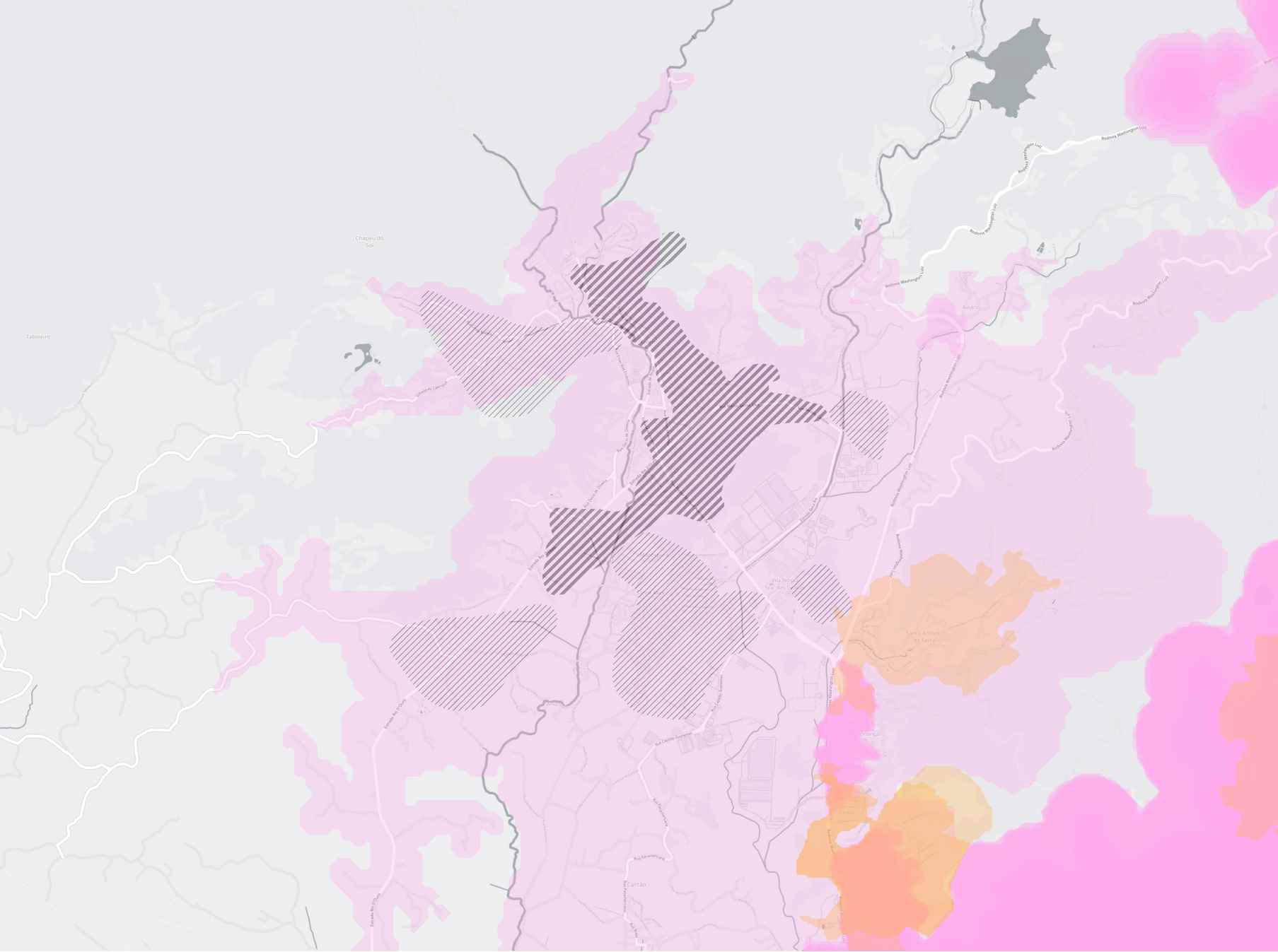 Les limites de la forêt et la façon dont elle touche la ville offrent cependant des situations intéressantes. Cette frontière est diffuse et pas très cohérente, car parfois c’est juste un mur construit tandis que d’autres c’est une pente raide ou des maisons auto-construites entourant une montagne déboisée. Dans tous les cas, il y a des points où cette frontière est déjà utilisée comme infrastructure pour la population locale, par exemple avec le mur à côté de l’entrée de la cascade, qui est utilisé comme