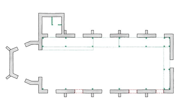 L’intervention projetée a pour objectif de mettre en valeur un bâti à caractère unique et singulier. Nous avons travaillé autour de la ruine, en prenant le parti de préserver le bâti classé dans son état actuel. Cette chapelle, avec son grand volume complètement ouvert, se révèle particulièrement propice à des usages événementiels et polyvalents. Dans cet espace flexible, le programme s’adapte aux besoins variés : marché, concert, représentation théâtrale, bar, et autres usages possibles.