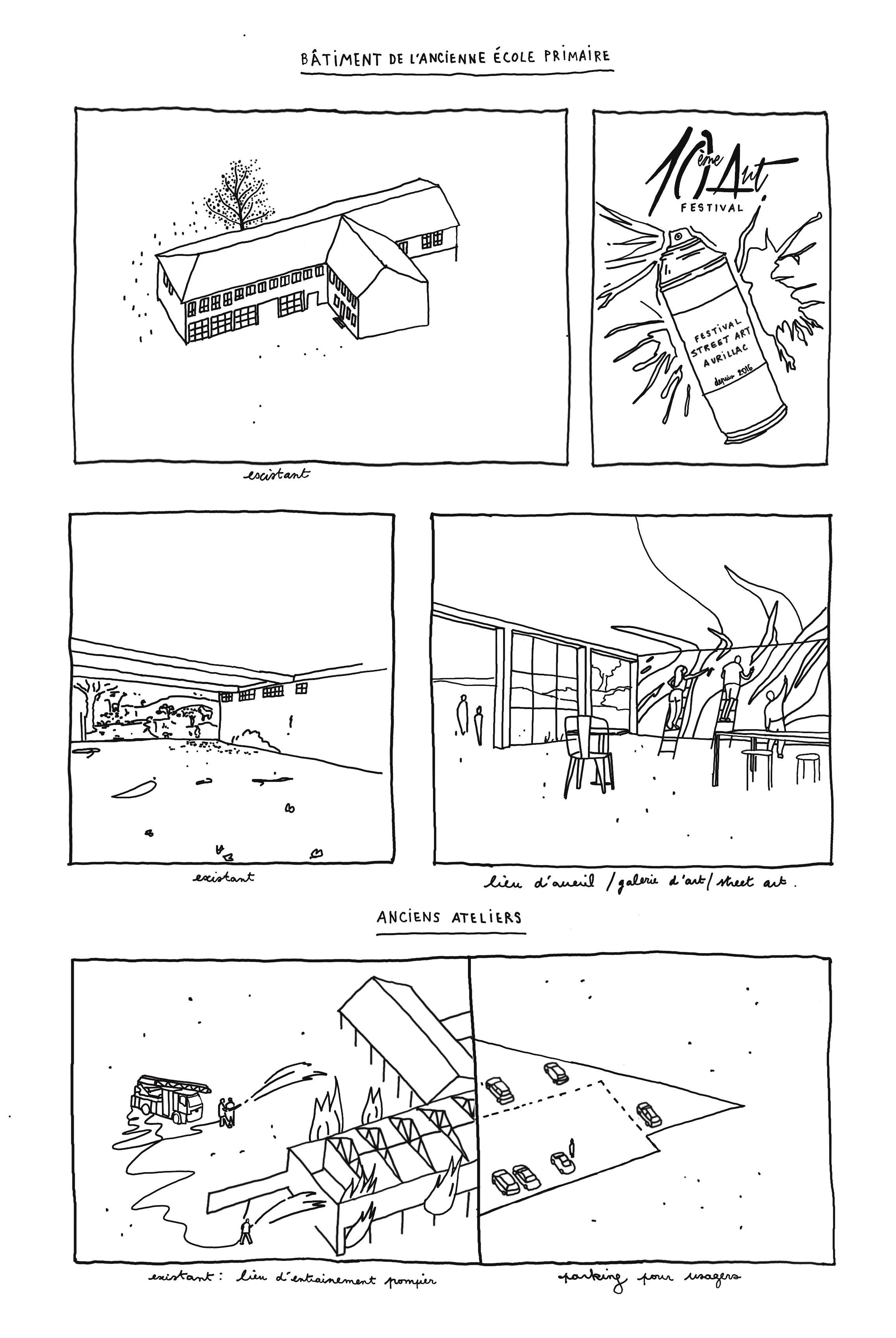 Dans ce projet de fin d’études, nous avons souhaité nous ancrer dans le réel : un site, ses acteurs... Dans cette démarche, l’existant a dicté le projet : le programme de chaque intervention a été déterminé selon les potentialités des bâtiments existants.