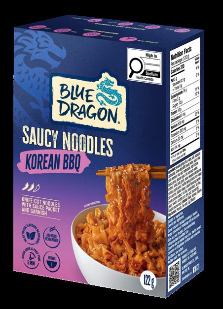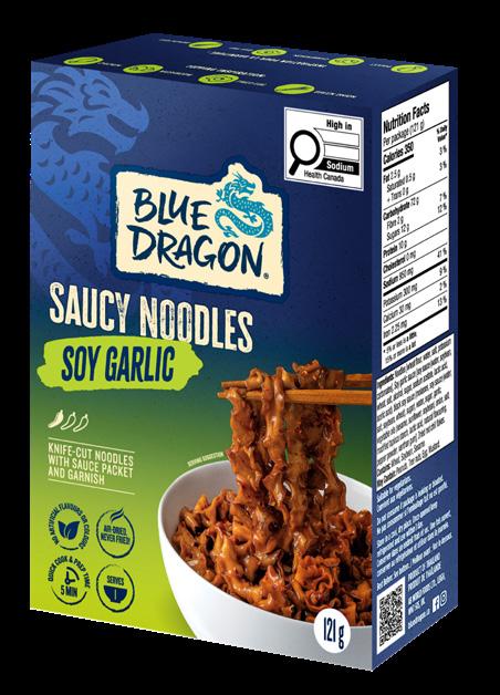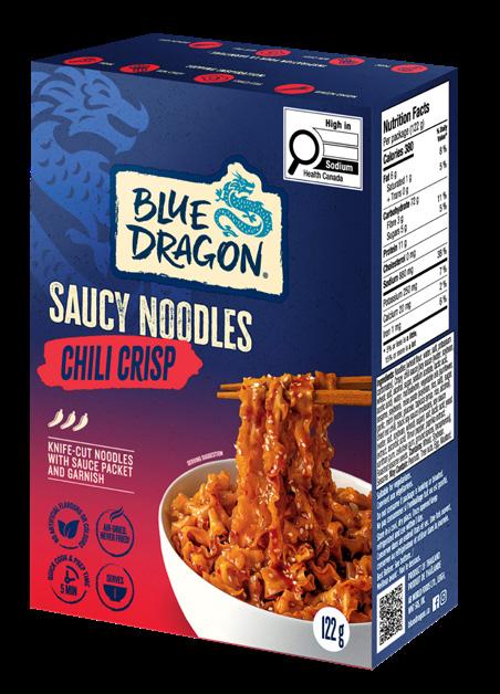 These aren’t your typical instant ramen noodles. Each pack of Blue Dragon Saucy Noodles comes with a ready-to-mix sauce, a garnish sachet (sesame seeds or chili flakes) and air-dried, knife-cut noodles—never fried! Vegan and ready in just five minutes, Saucy Noodles are available in Soy Garlic, Chili Crisp and Korean BBQ.