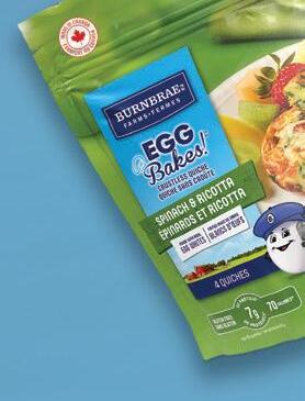 Other food companies such as Burnbrae Farms are also getting into the act, offering breakfast items in a variety of convenience-oriented formats. Burnbrae’s portfolio includes Egg Creations sandwiches, Egg Bakes and Eggs2go, the latter consisting of hard-boiled eggs in portable packaging.