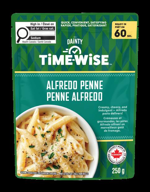 Dainty Foods has launched a side-dish brand that, as the name suggests, is designed with convenience and time-saving in mind. The first rollout includes three pasta varieties (Alfredo Penne, Tomato Basil Rotini, and Mac and Cheese) in 250-gram microwaveable pouches that are ready to eat in 60 seconds. CG