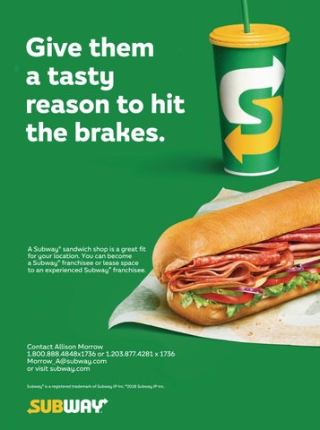 Contact Allison Morrow 1.800.888.4848x1736 or 1.203.877.4281 x 1736 Morrow_A@subway.com or visit subway.com Subway® is a registered trademark of Subway IP Inc. ©2018 Subway IP Inc.