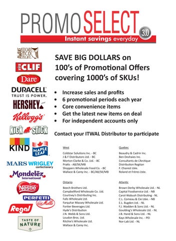 Brown Derby Wholesale Ltd. - NL Capital Foodservice Ltd. - NB Carol-Wabush Distributing - NL C.L. Comeau & Cie Ltée. - NB E.L. Bugden Ltd. - NL F.J. Wadden & Sons Ltd. - NL Goulding’s Wholesale Ltd. - NL J.B. Hand & Sons Ltd. - NL Kays Wholesale Inc. - PEI Nor-Lab Ltd. - NL