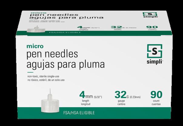 Another new product is the Simpli pen needle from UltiMed Inc. Sarah Hanssen, vice president, sales and marketing, explained that it is a “cash-friendly overthe-counter option” for consumers needing insulin injections. It retails in a 90-count box and allows pharmacies to offer an option that’s affordable outside of insurance.