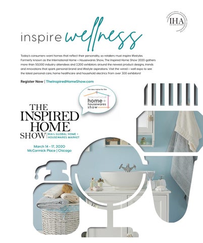 Today’s consumers want homes that reect their personality, so retailers must inspire lifestyles. Formerly known as the International Home + Housewares Show, The Inspired Home Show 2020 gathers more than 50,000 industry attendees and 2,200 exhibitors around the newest product designs, trends and innovations that spark personal brand and lifestyle aspirations. Visit the wired + well expo to see the latest personal care, home healthcare and household electrics from over 300 exhibitors!