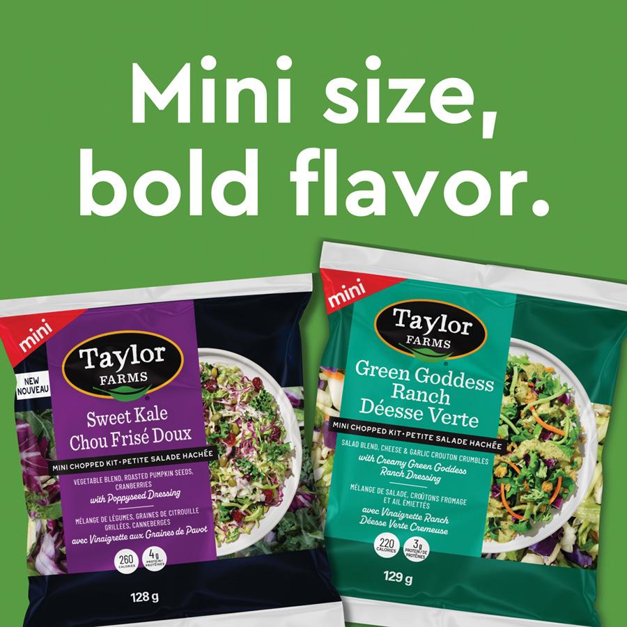 With single households and the need for value sizes on the rise, we’ve seen a need to offer multiple sizes of our kits. You can find the new Taylor Farms mini chopped kits for the single-serve option that are great for smaller household. The Value Size versions of our most popular kits, Sweet Kale and Caesar, offer a larger portion size in one convenient offering.