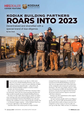 serve.” That concept is hard at work in this month’s cover story on Kodiak Building Partners. See page. 16.