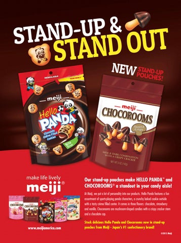 Stock delicious Hello Panda and Chocorooms now in stand-up pouches from Meiji - Japan’s #1 confectionery brand! ©2015 Meiji